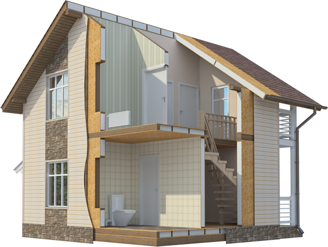 Такие панели выбираю для надстроек, мансард, крыш, перекрытий. Но чаще всего материал выбирают для частных домов. Такие объекты называют возведенными по канадскому методу.